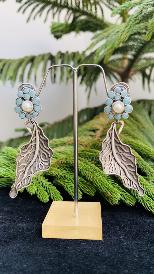 High quality black polish silver jewellery collection of Indian Mores. This is branch shaped traditional leaf shaped earrings that looks better with any attire and can be the part of your festival collection in your wardrobe.