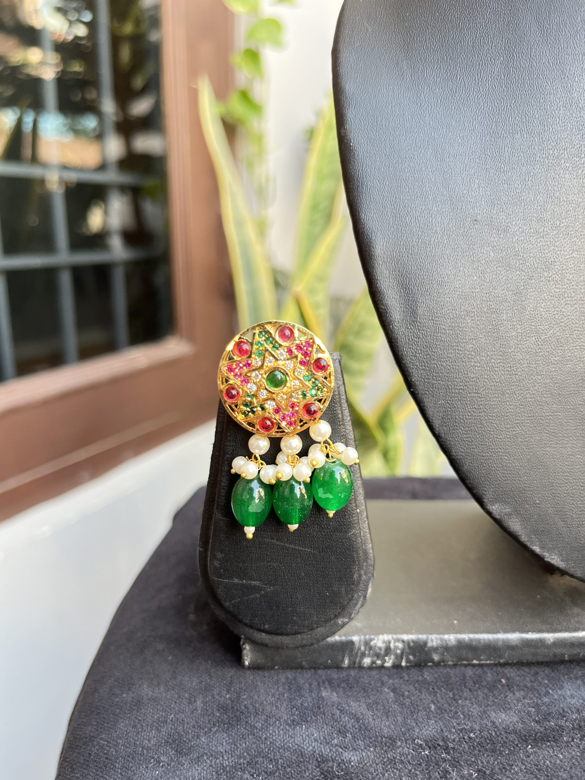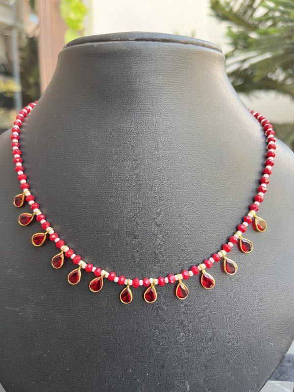 Indian Mores Traditional AD & Red Stone Studded Necklace Set